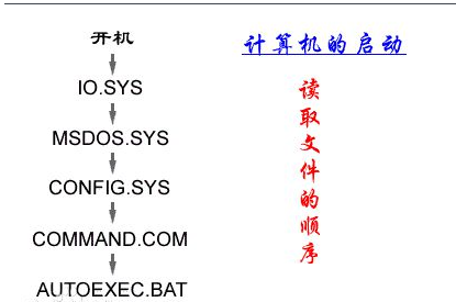 DOS在启动会自动运行这个文件,一般在里面装载每次必用的程序,如: path(设置路径)、smartdrv(磁盘加速)、 mouse(鼠标启动)、mscdex(光驱连接)、 doskey(键盘管理)、set(设置环境变量)等。