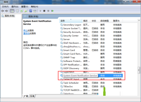 2、在服务列表中,找到“System Event Notification Service”服务项,并双击打开;如下图所示