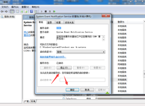 4、然后点击“停止”按钮,点击确定,重启电脑即可。如下图所示