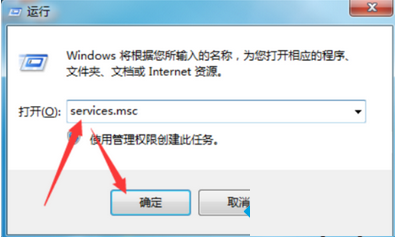 1、按Win+R组合键,打开运行,输入services.msc,点击确定;如下图所示