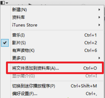 1、打开iTunes,点击菜单,选择“将文件添加到资料库”;