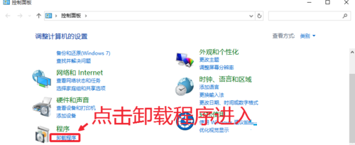 2、控制面板中,打开这里的卸载程序进入,点击如图所示的地方。