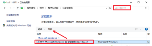 4、查找更新补丁KB3132372,这是微软最新的一个修复Adobe Flash Player里的安全漏洞的一个补丁更新,找到这个补丁后卸载。