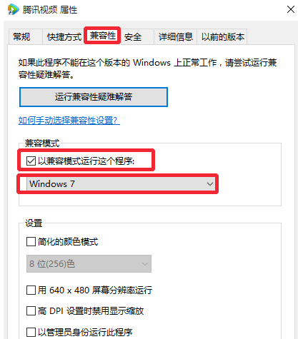 2、属性窗口中,我们选择兼容性,以兼容模式运行程序试试,如图所示。