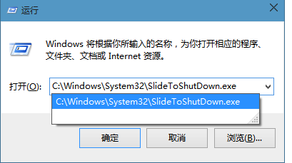 2、在运行窗口,输入下面一行地址:“C:\Windows\System32SlideToShutDown.exe”。